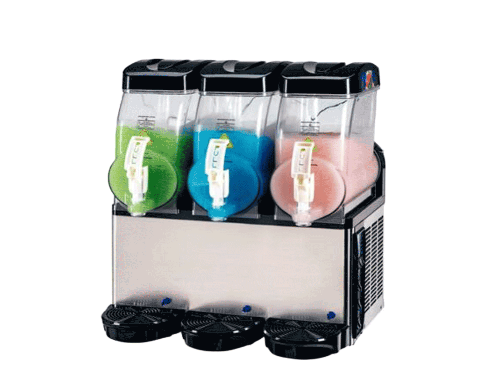 - سه مخزن مجزا با ظرفیت 12 لیتری: این دستگاه دارای سه مخزن جداگانه است که هر کدام ظرفیت 12 لیتر دارند. این ویژگی به شما امکان میدهد تا انواع مختلفی از نوشیدنیهای یخی و شربتها را همزمان تهیه و عرضه کنید.
